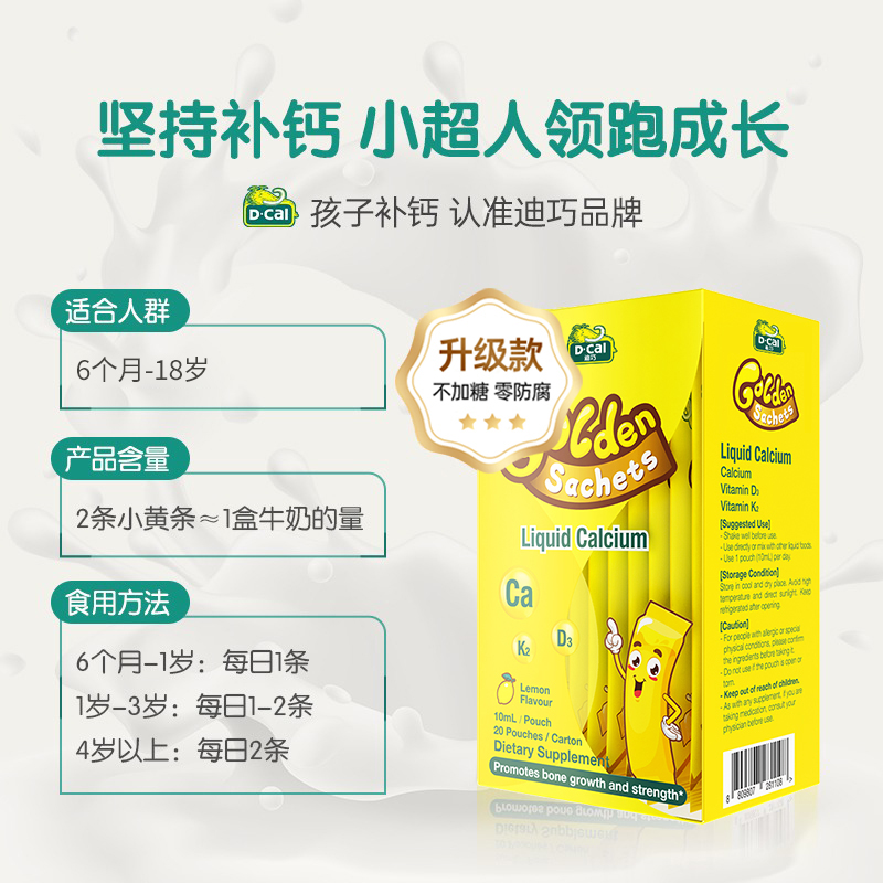 商品介绍:dcal迪巧小黄条液体钙&钙锌任选
