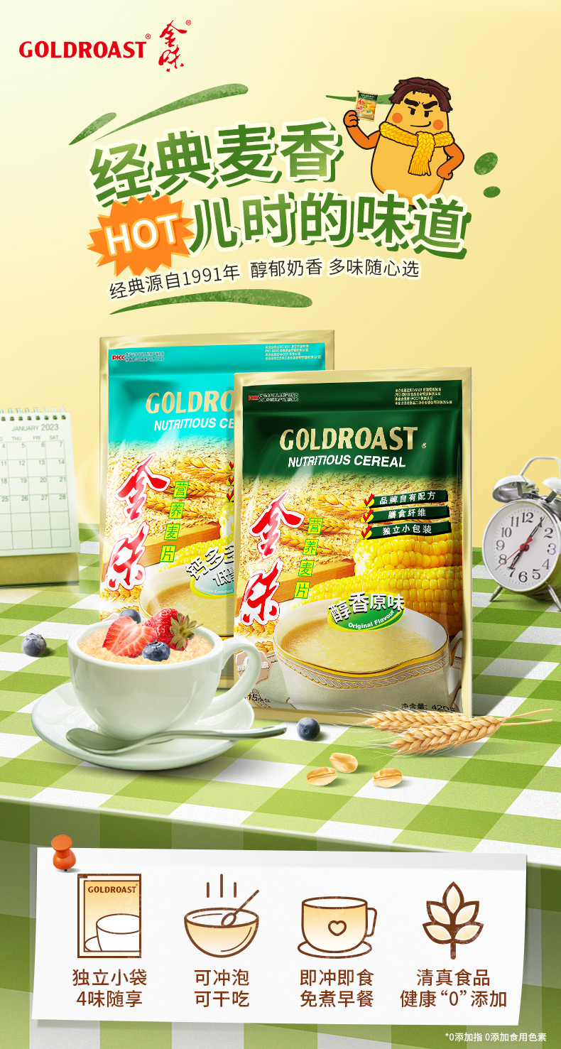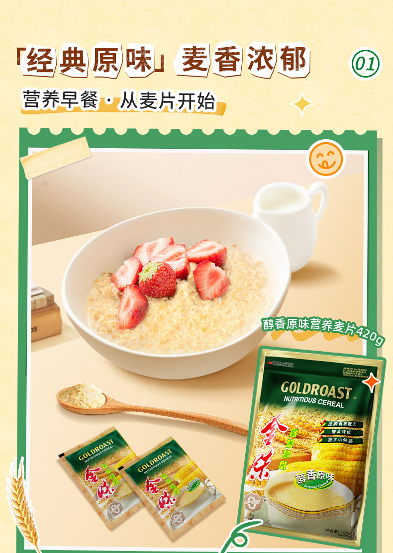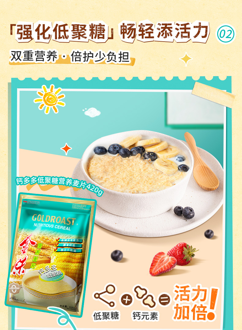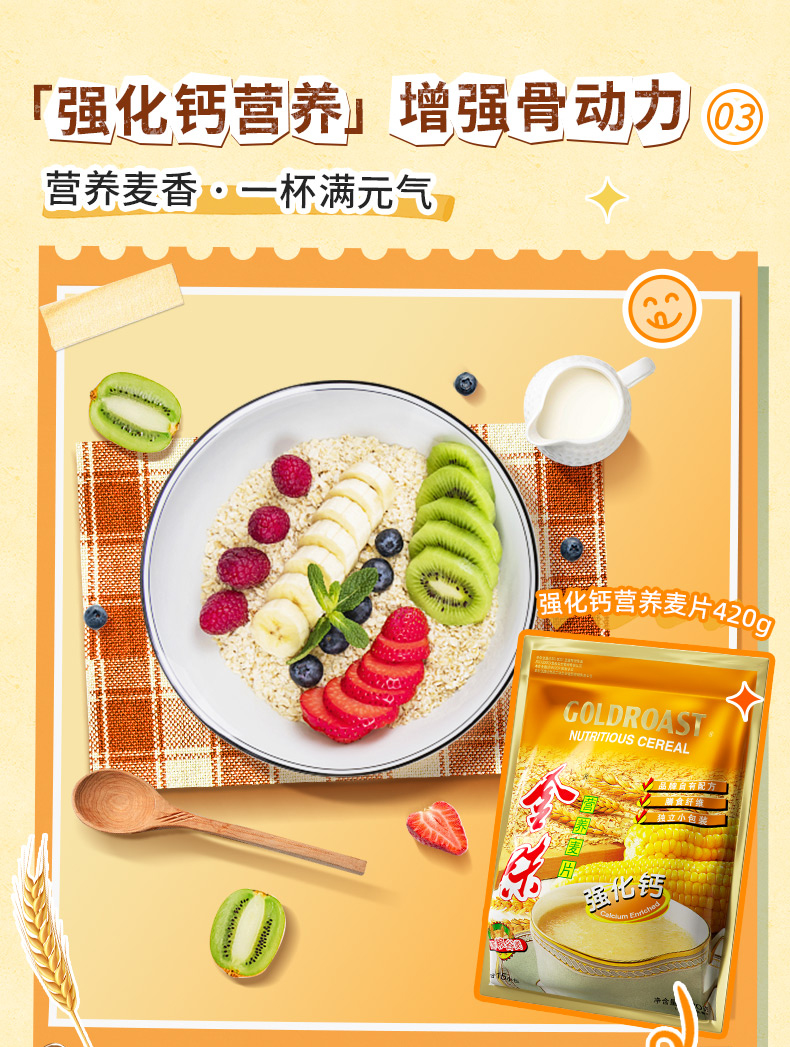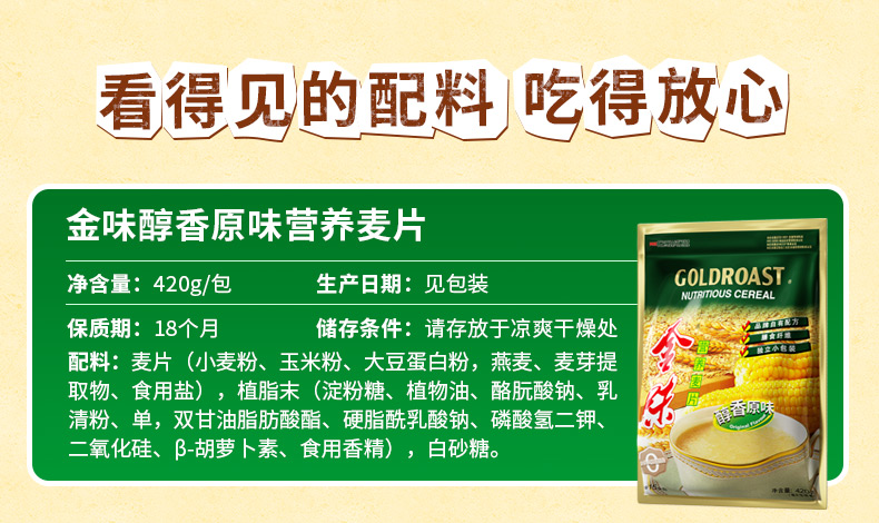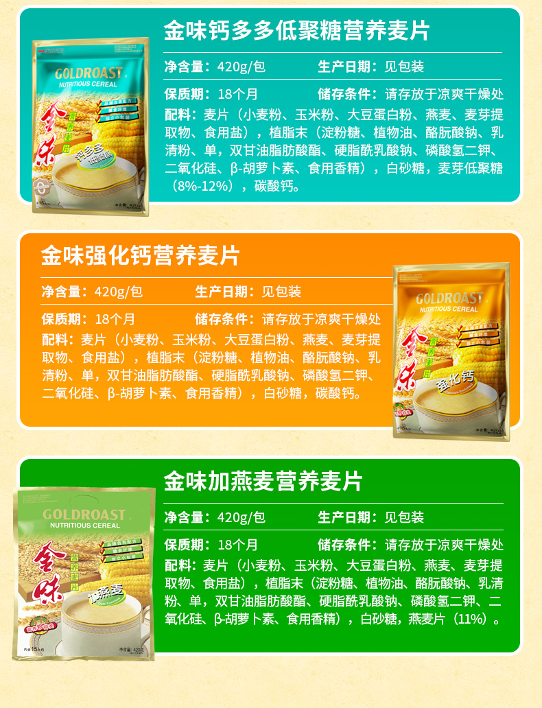 商品介绍:金味冲饮麦片营养麦片钙多多低聚糖420g