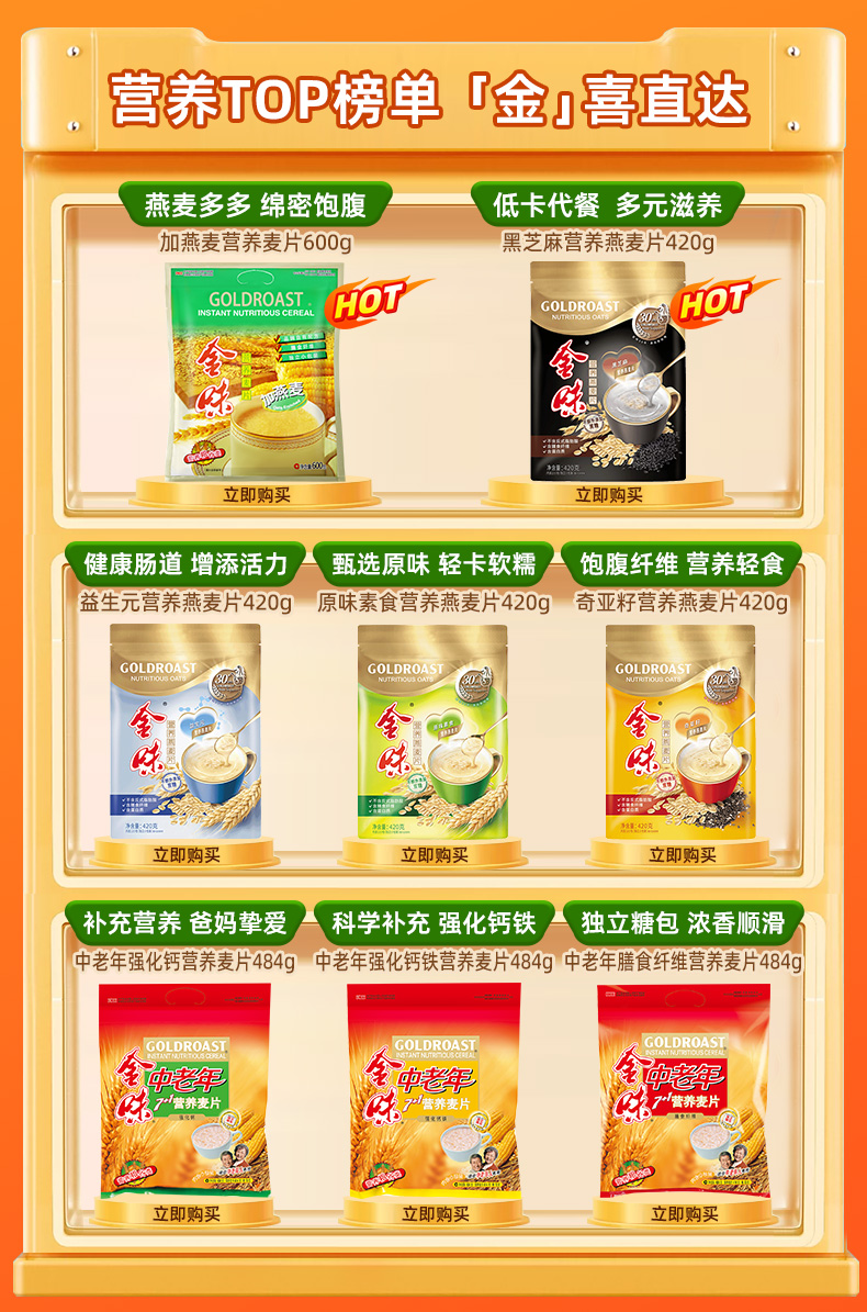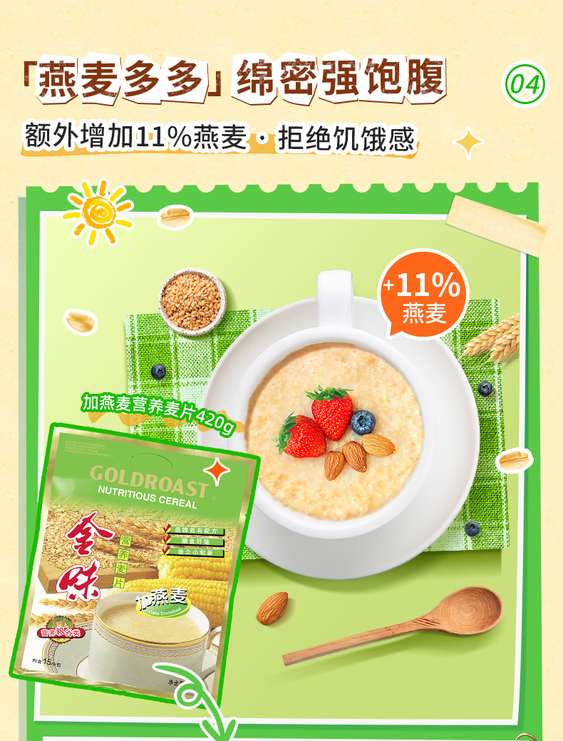 商品名称:【尝鲜款420g】金味营养麦片钙多多低聚糖/加燕麦15小包早餐燕麦