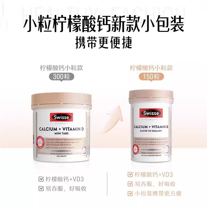 商品介绍:拍6件!48/瓶Swisse柠檬酸钙迷你钙300粒*16