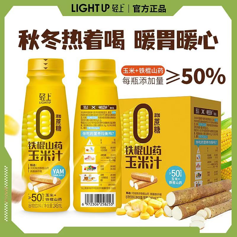 商品名称:轻上 铁棍山药玉米汁鲜榨玉米富含膳食纤维五谷杂粮营养早餐整箱