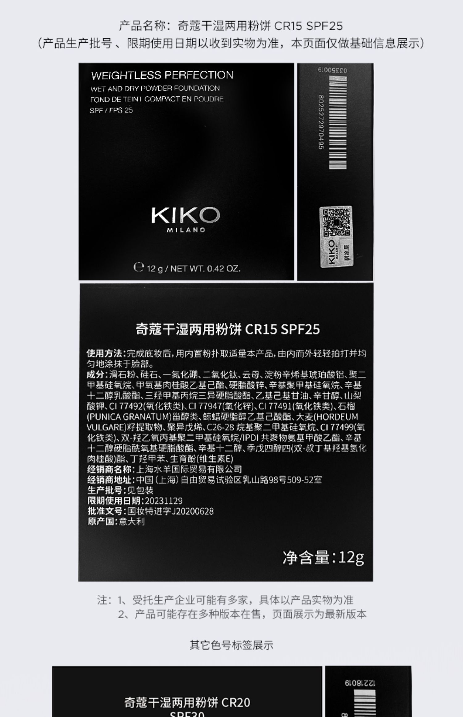 商品名称:【达人专属】KIKO干湿两用防晒粉饼定妆补妆遮瑕