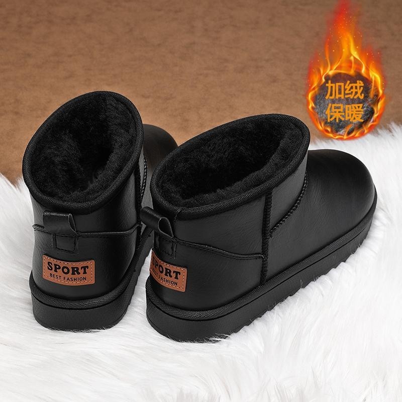 商品介绍:【货补到手33.58】新款加绒皮面雪地靴