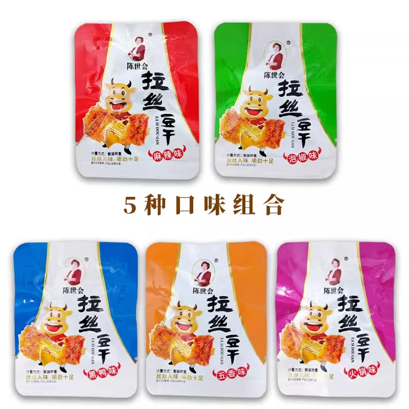 商品名称:陈世会拉丝豆干手撕豆干素肉100袋五种口味豆制品零食辣条小包装