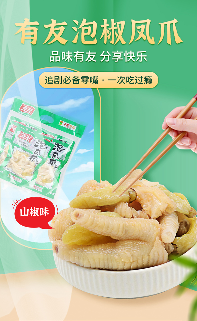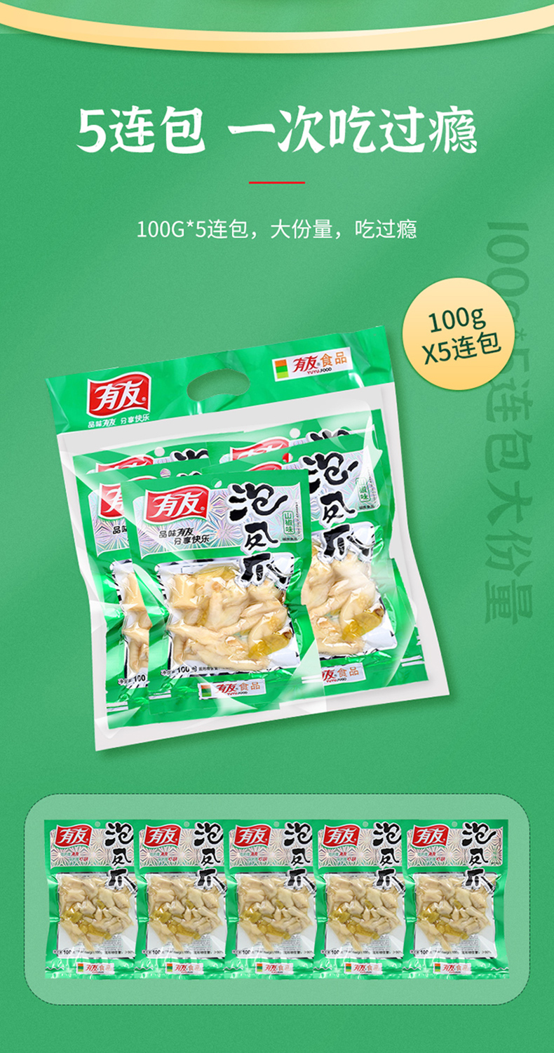 商品介绍:有友泡椒凤爪100g*5连包组合