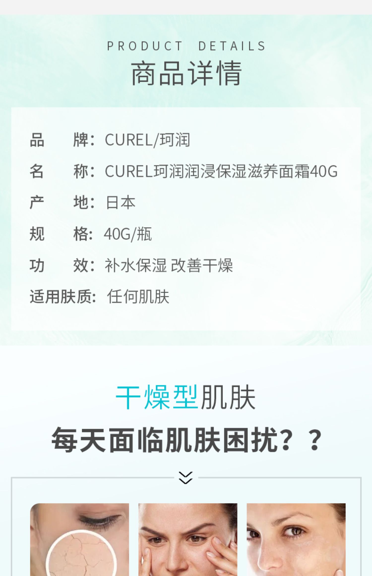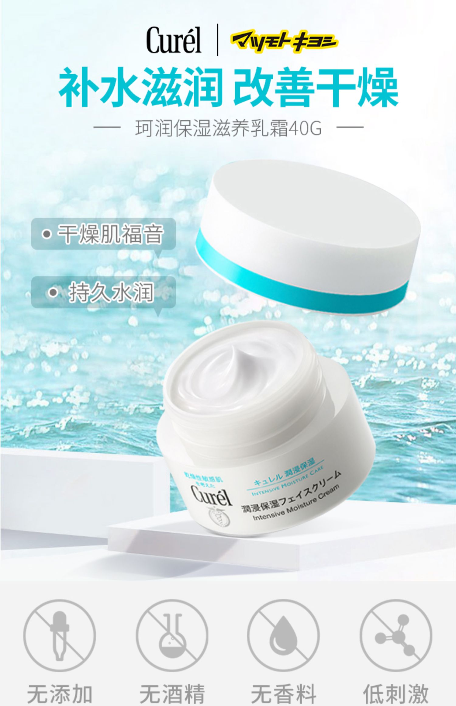 商品名称:官方正品日本松本清Curel珂润干燥肌滋润补水角鲨烷保湿面霜40g