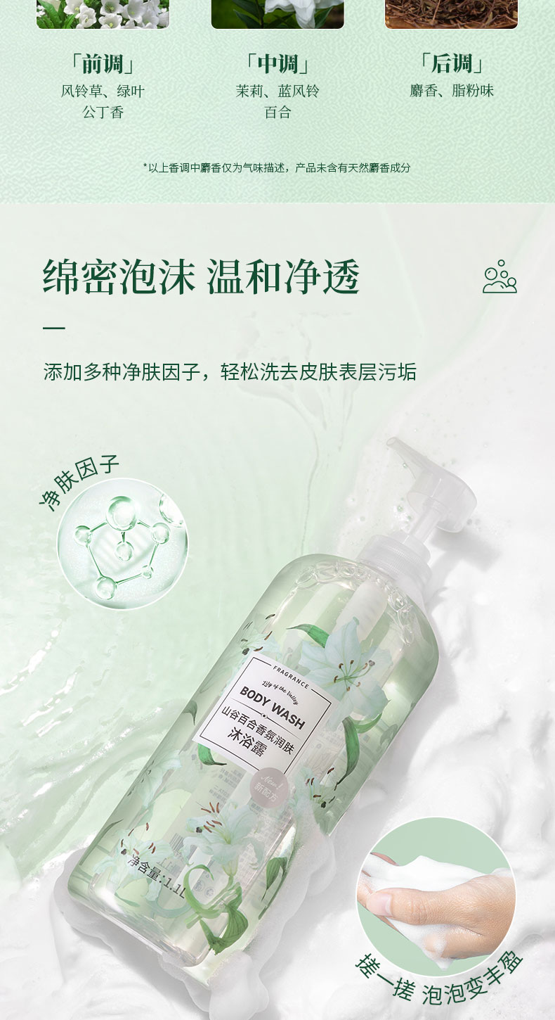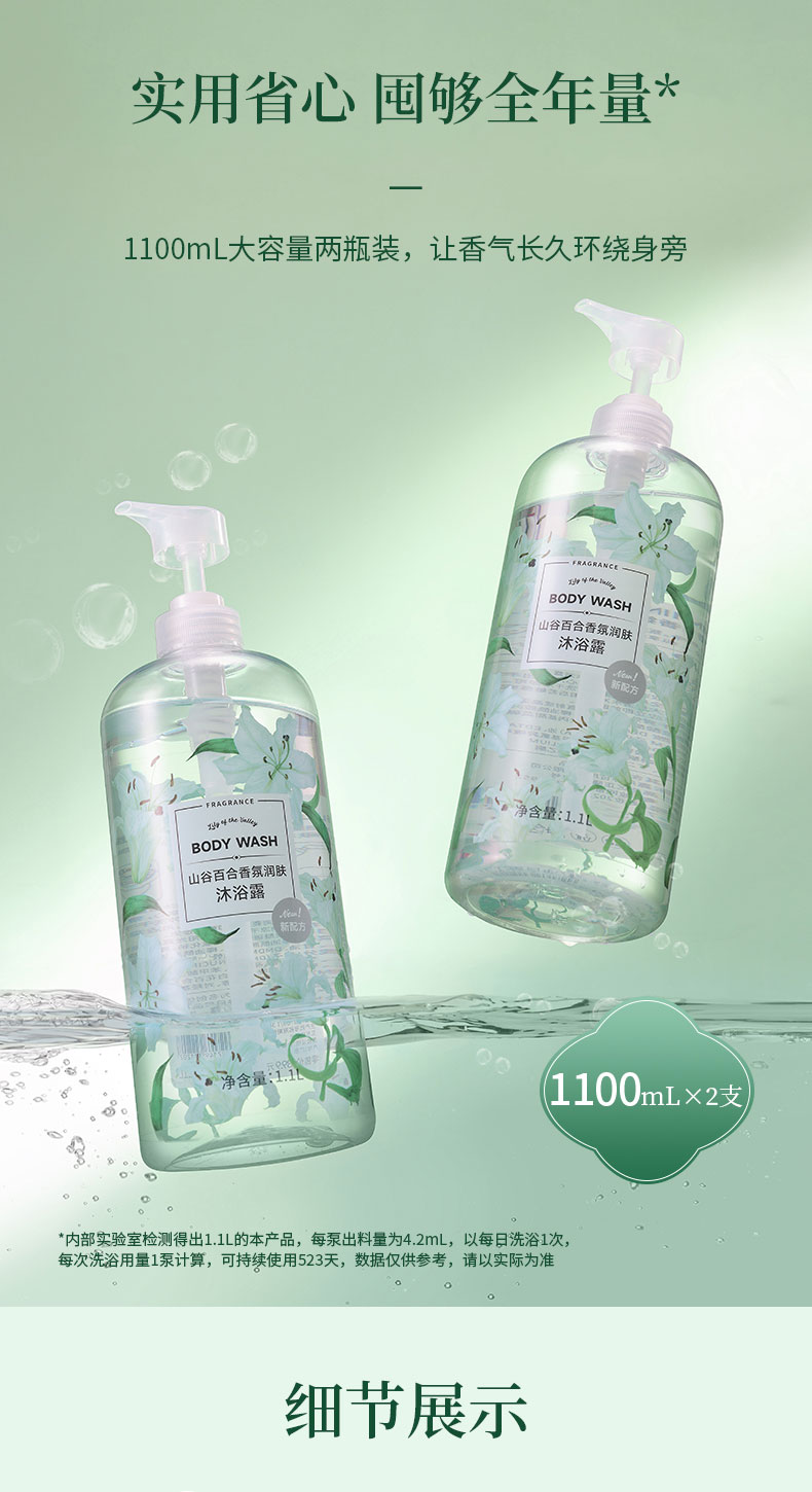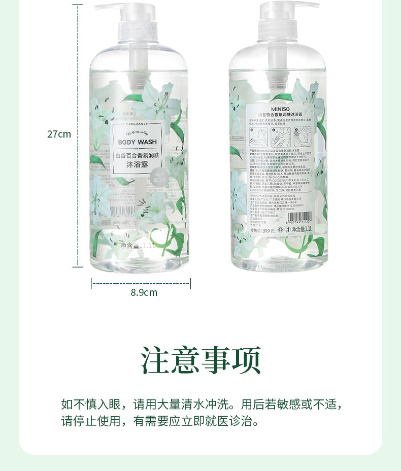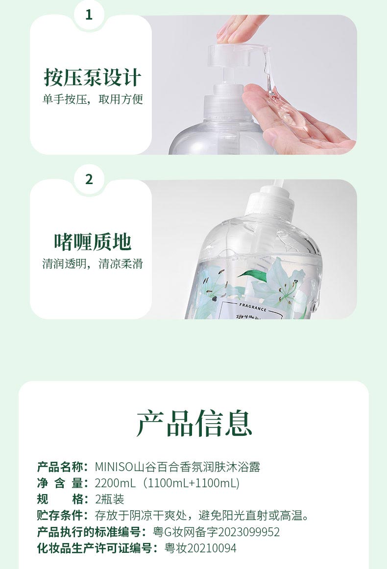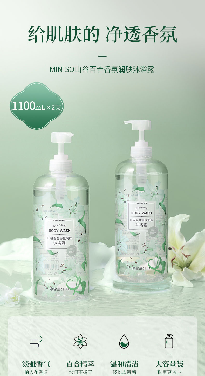 商品介绍:名创优品润肤香体沐浴露1100ml*2瓶