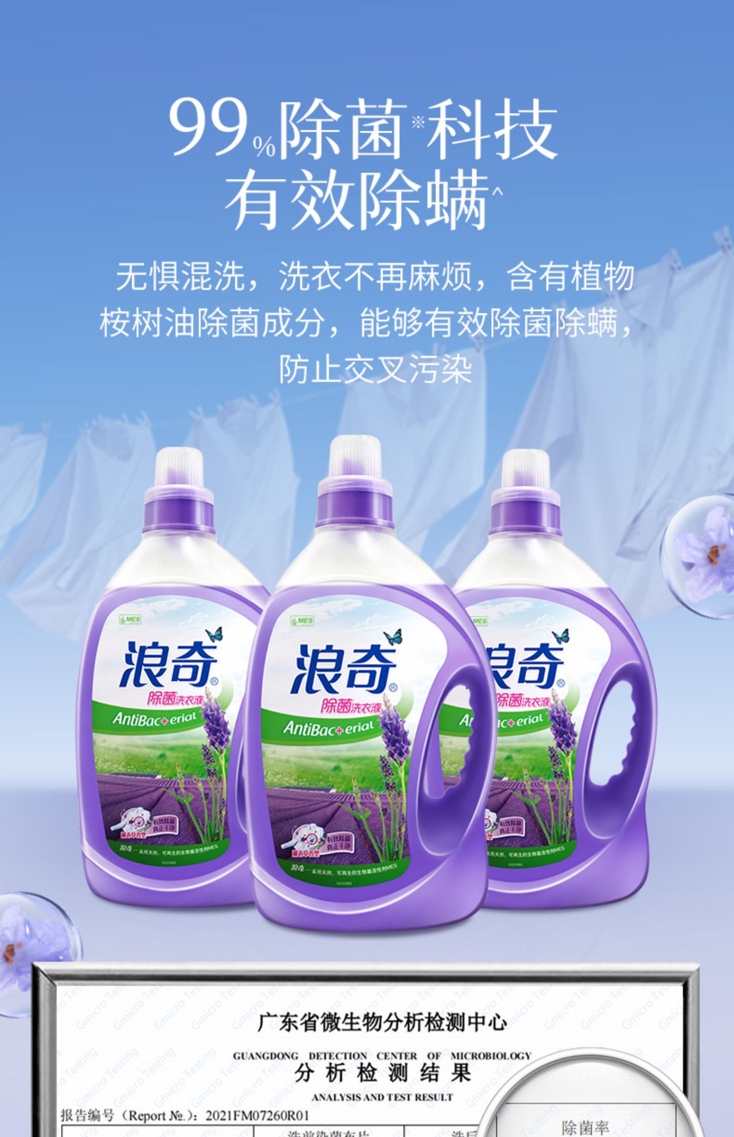 商品名称:浪奇薰衣草洗衣液除菌除螨消臭去汗味持久留香家庭组合装整箱