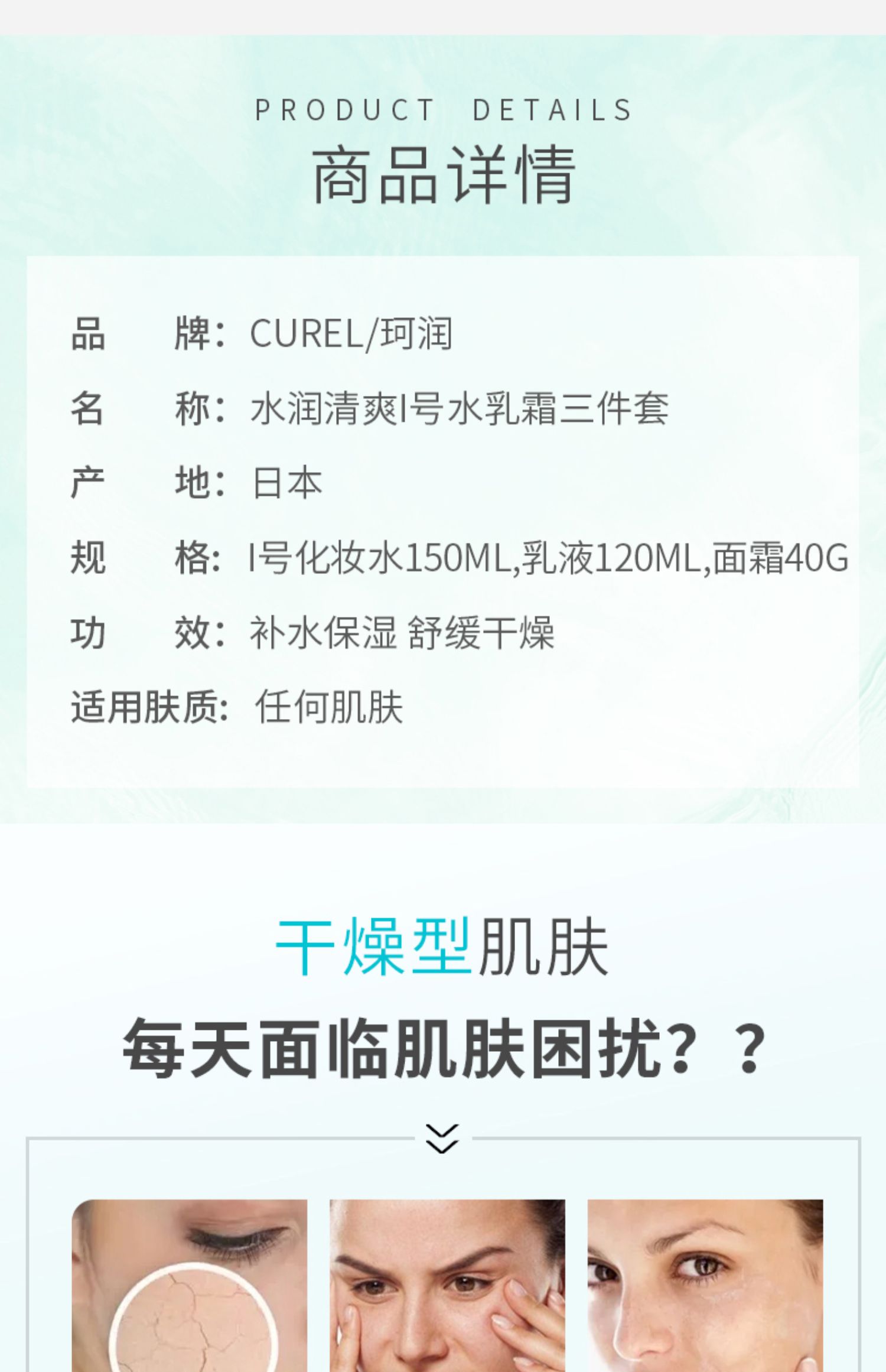 商品名称:正品日本松本清珂润干燥肌I号化妆水乳液面霜神经酰胺保湿3件套装