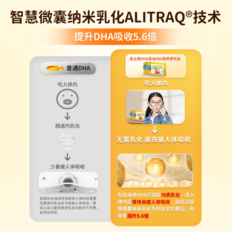 商品名称:爱立维DHA藻油ARA儿童青少年甜橙味口服液官方正品营养素饮品