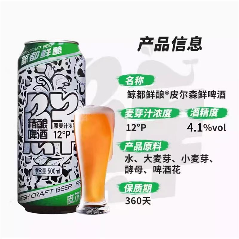 商品介绍:鲸都鲜酿皮尔森鲜啤酒500ml*12罐
