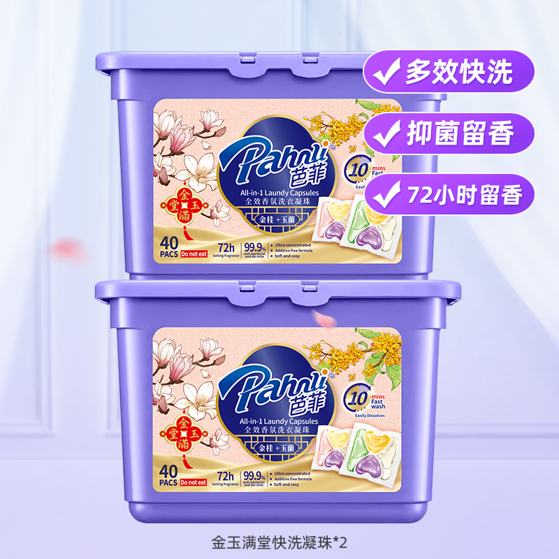 商品介绍:芭菲四效合一全效香氛洗衣凝珠40颗*2