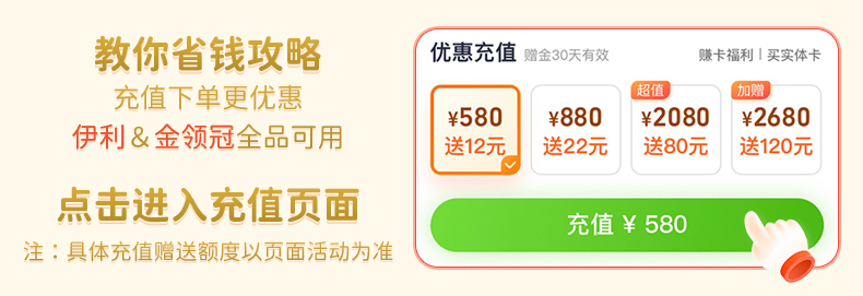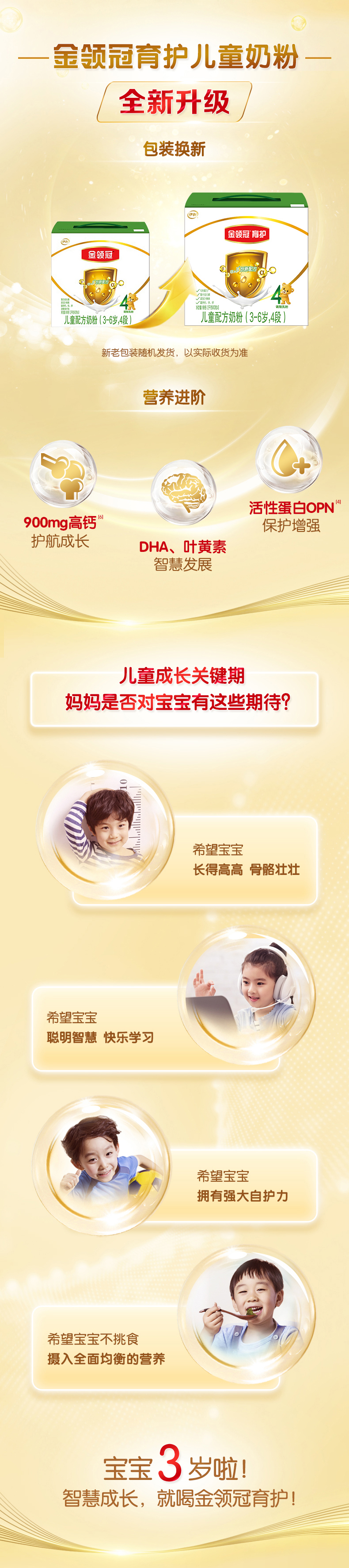 商品名称:伊利金领冠育护儿童配方牛奶粉4段1.2kg×1盒3-6岁成长配方奶粉
