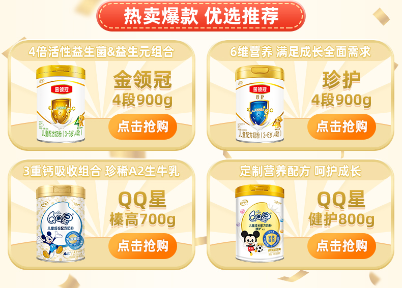 商品简介:【拍4件,4件淘金币抵15.72元,券500-40,赠20猫卡,到手346.68元!】伊利金领冠儿童配方牛奶粉4段1.2kg,3-6岁宝宝成长配方奶粉,专为中国宝宝设计。