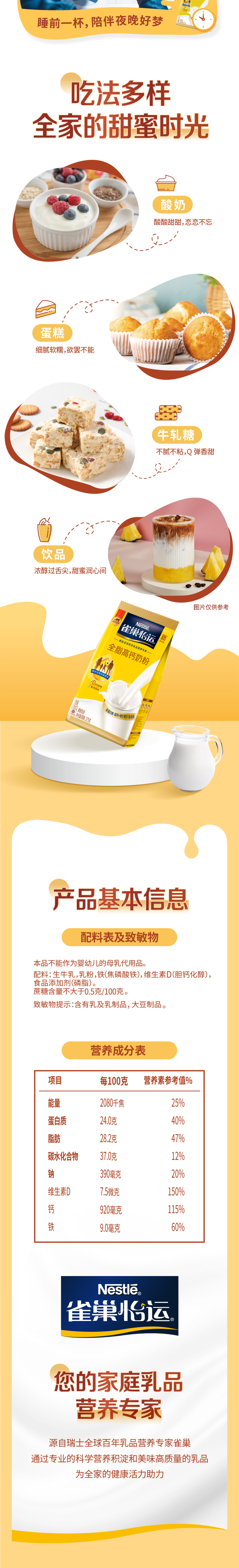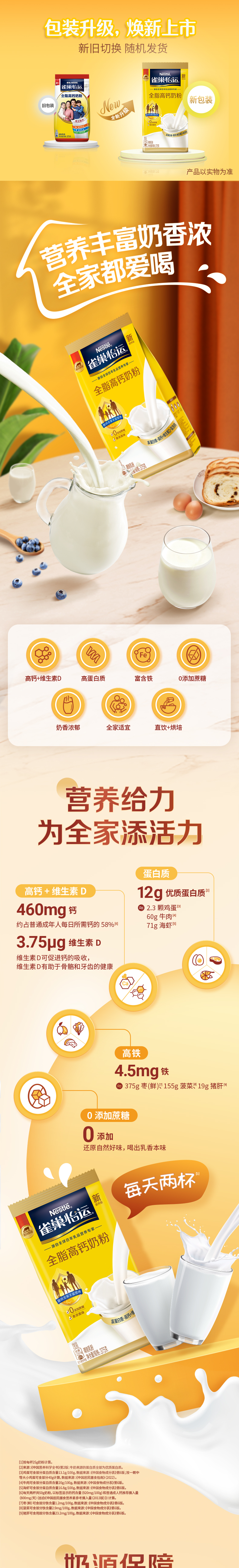商品介绍:雀巢怡运全脂高钙牛奶粉375g