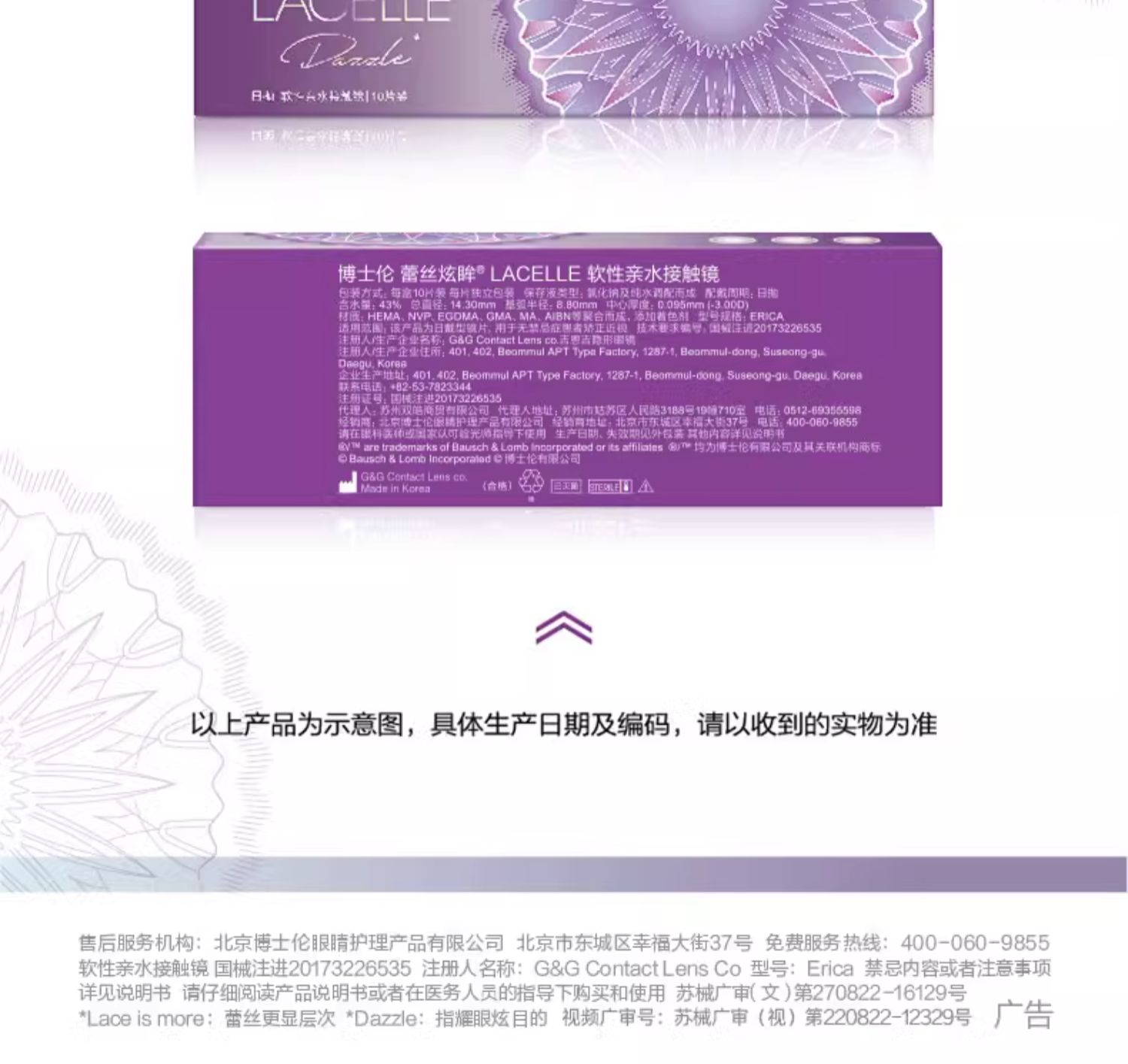 商品介绍:拍2博士伦小布联名蕾丝美瞳日抛隐形眼镜