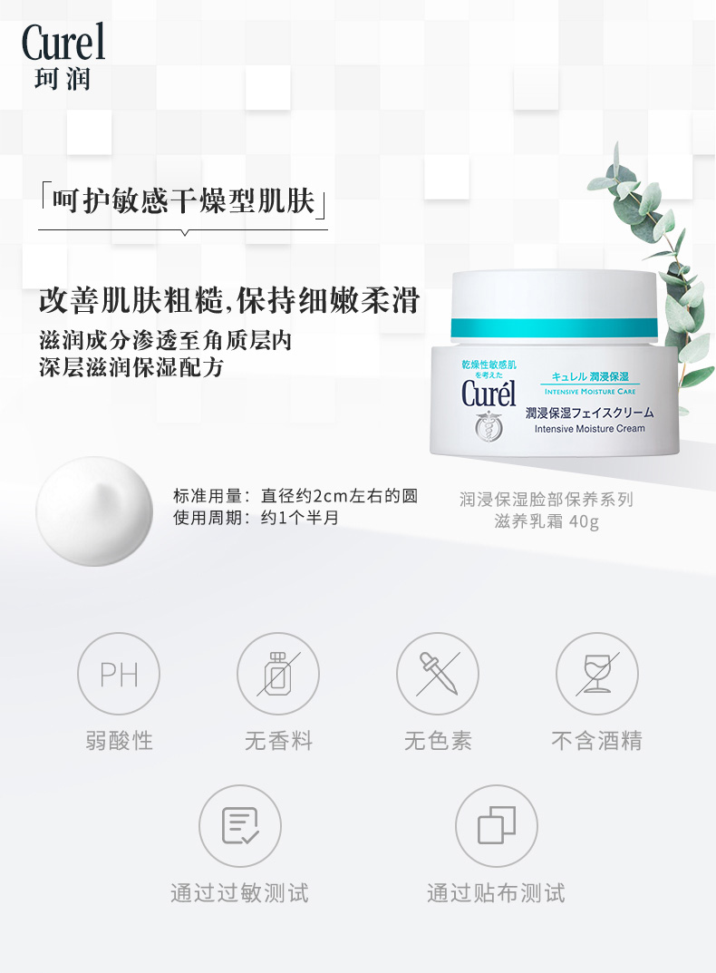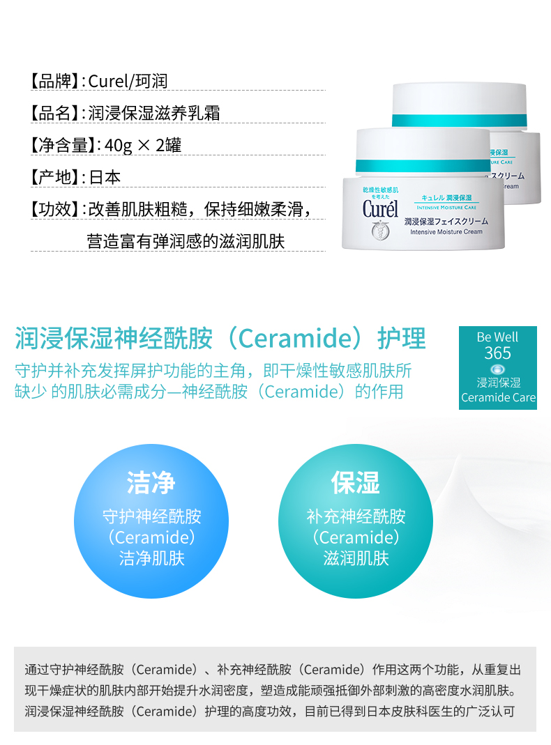 商品介绍:珂润海外旗舰店+珂润保湿补水面霜40gx2罐