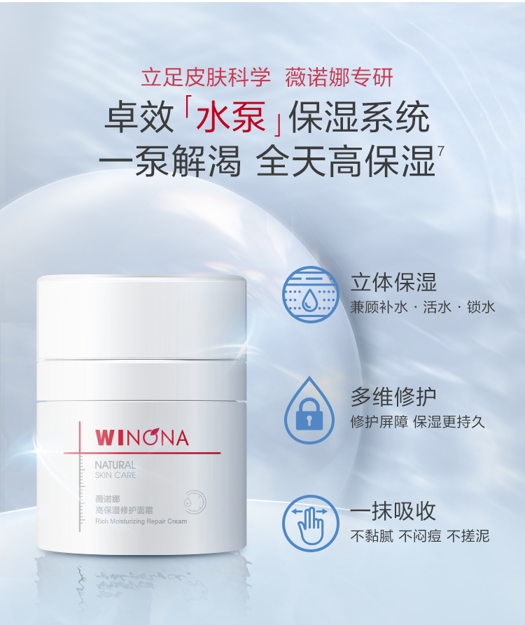 商品名称:【双11立即抢购】薇诺娜高保湿修护面霜水泵霜2.0干皮补水滋润