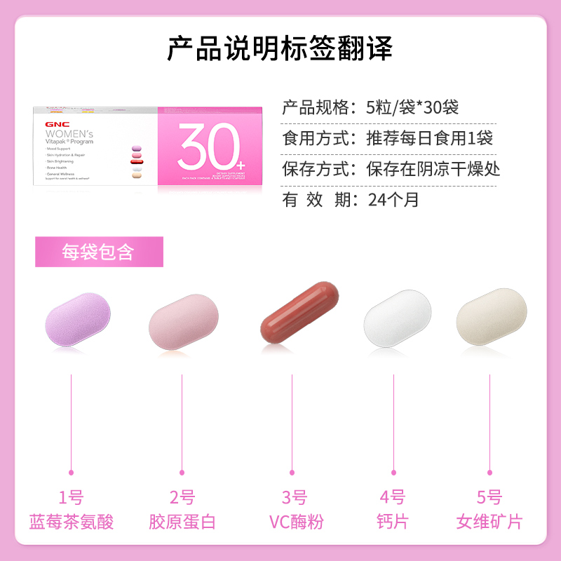 商品简介:【拍立减54,叠加津贴300-50,88VIP到手283.1】【自营】GNC健安喜女性30+每日营养包,易吸收,口感好,无需刻意坚持,轻松摄取营养,超赞!