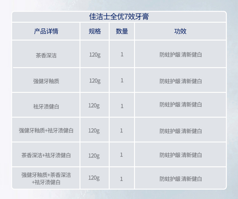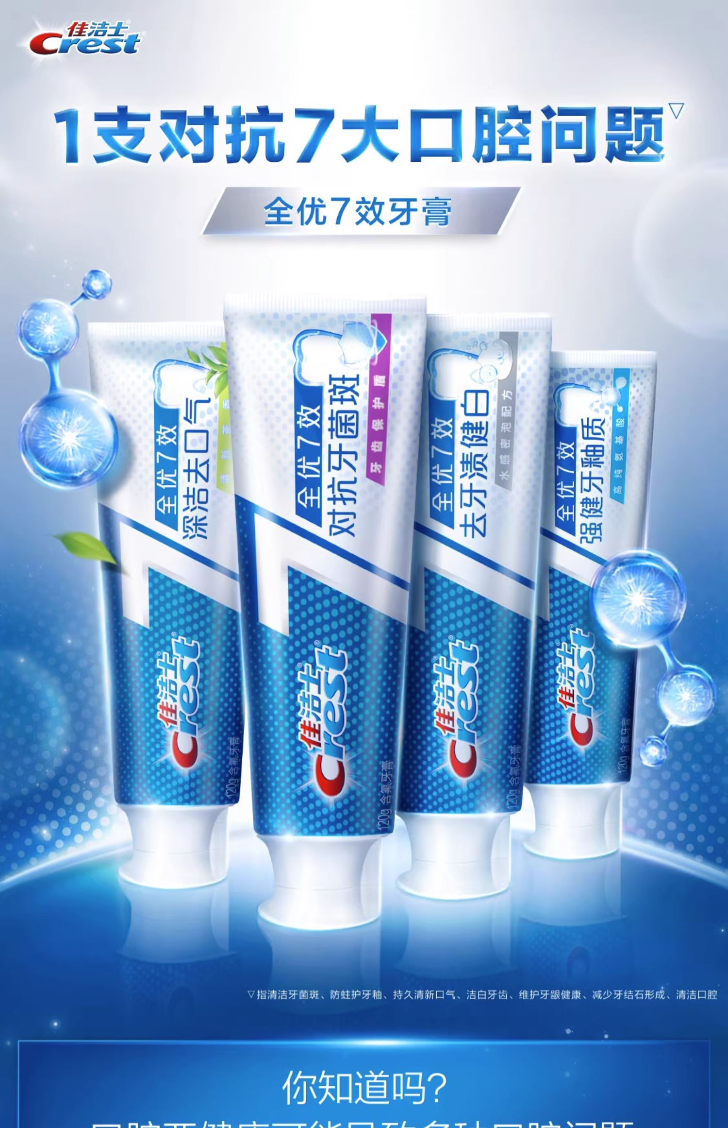 商品名称:佳洁士牙膏全优7效口气清新口腔清洁防蛀护龈家庭官方旗舰店120g
