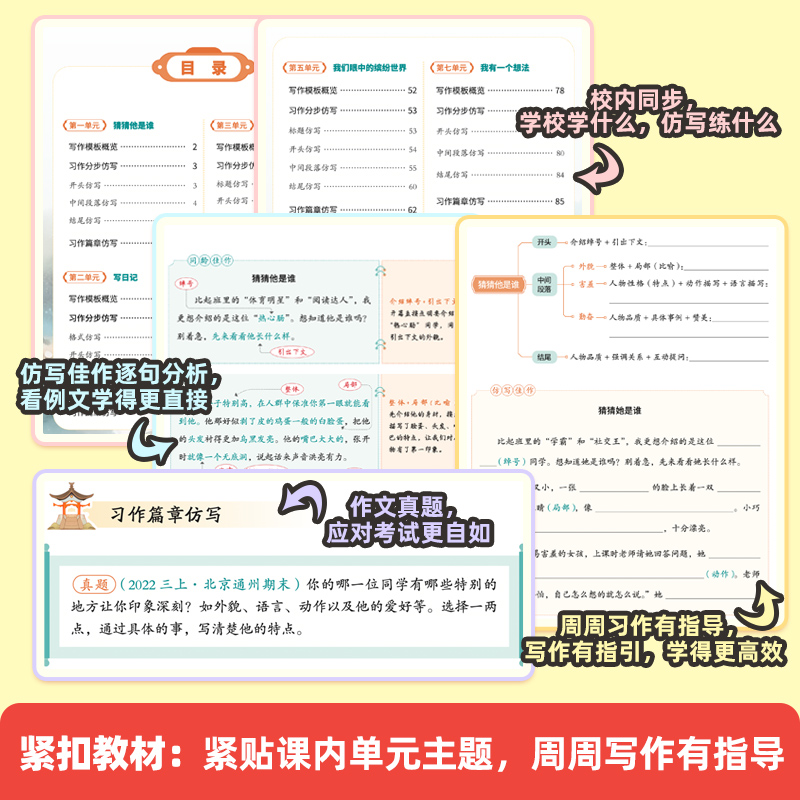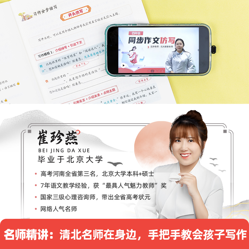 商品简介:【作业帮旗舰店】小学语文同步作文仿写训练,同步教材,学赏练诊4步走,AI作文批改,清华视频讲解,60+个写作技法,0基础也能成为写作高手,能仿就能写,高分作文轻松搞定~1-2年级,选看图写话;3-6年级,选同步作文仿写!