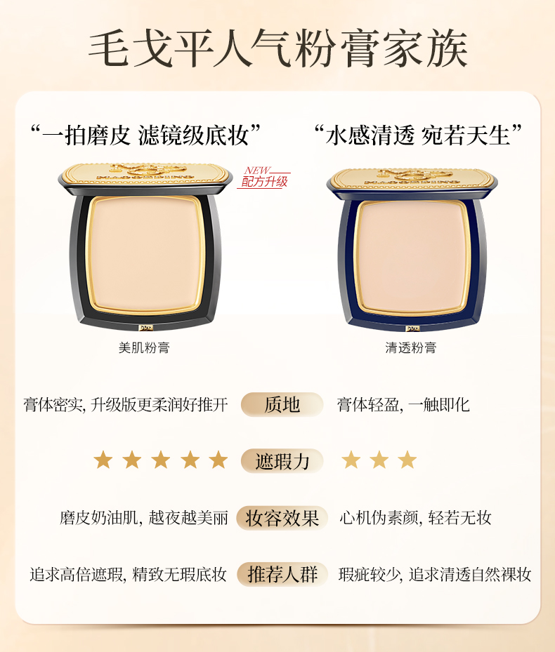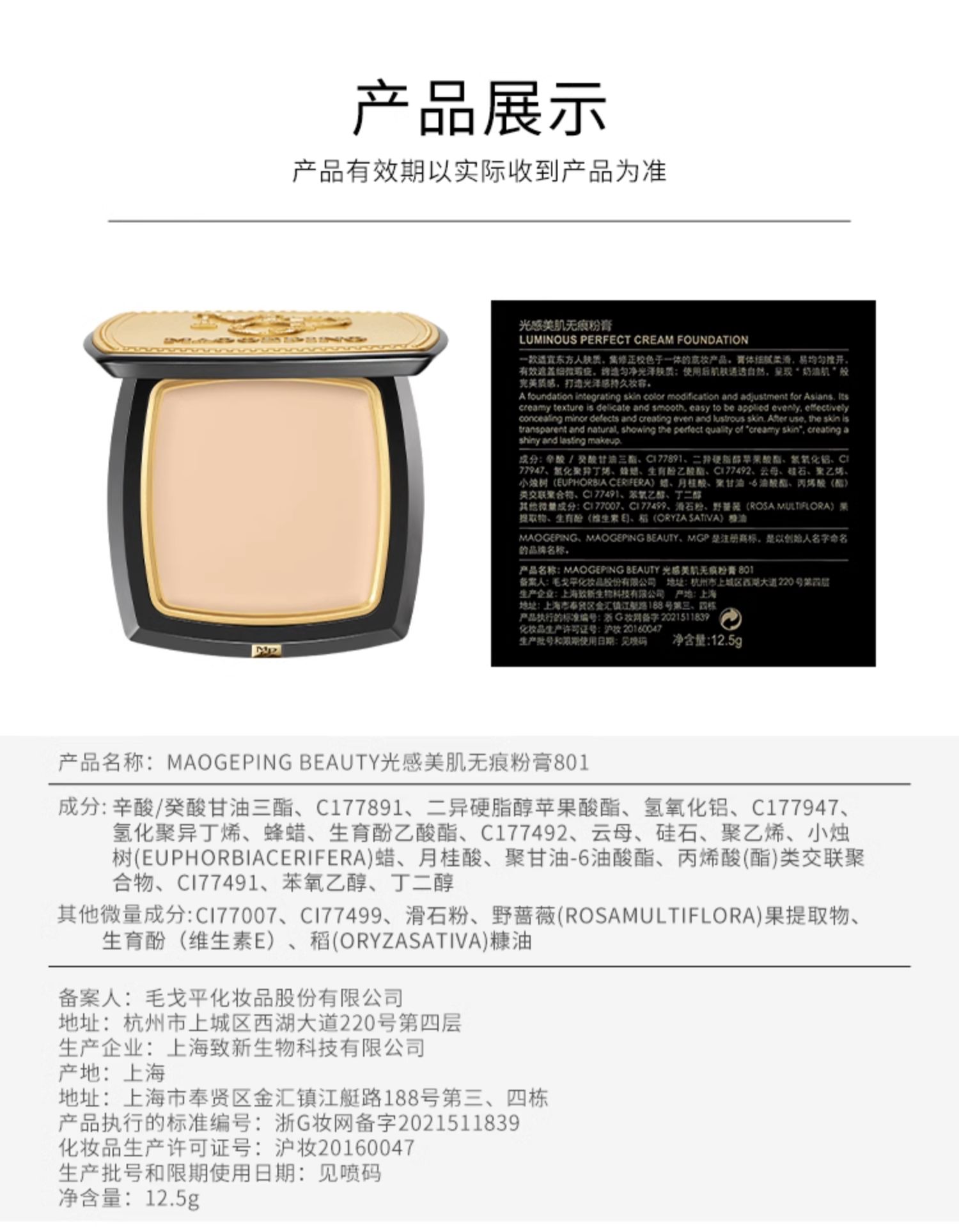 商品介绍:毛戈平光感美肌持久遮瑕粉底膏