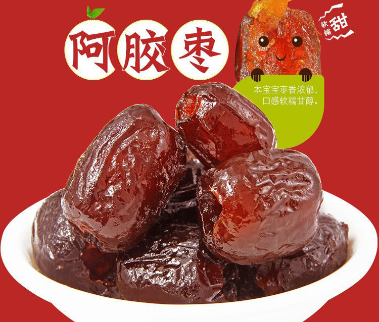 商品名称:山东东阿县阿胶水晶枣金丝枣即食独立包装 东阿发货