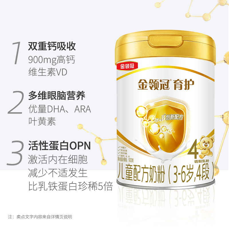 商品名称:伊利金领冠育护4段宝宝儿童奶粉900g×6罐3-6岁儿童成长配方奶粉