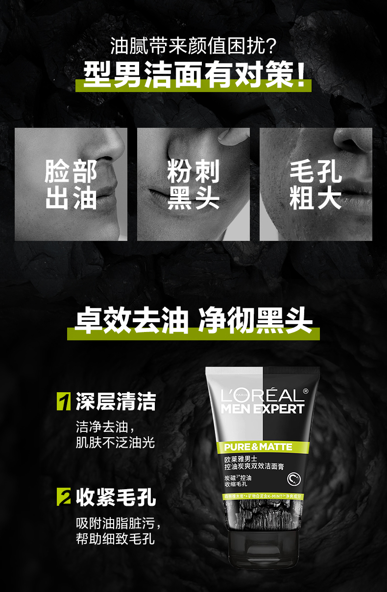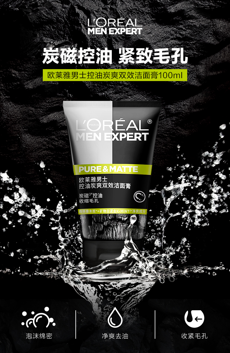 商品介绍:欧莱雅男士炭爽双效控油洁面100ml