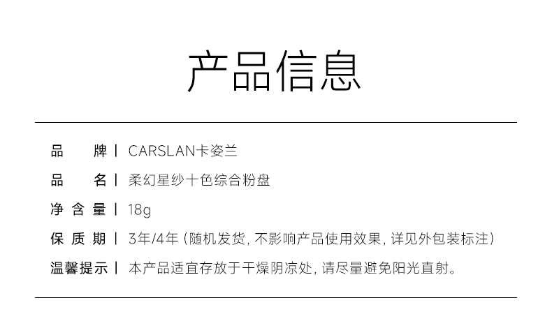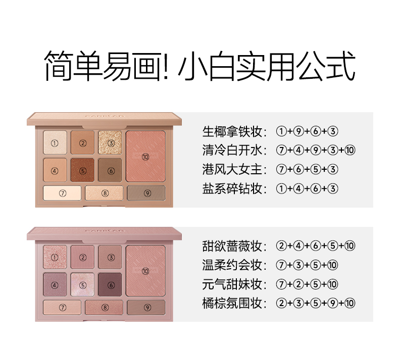商品介绍:【卡姿兰】综合哑光修容十色眼影盘
