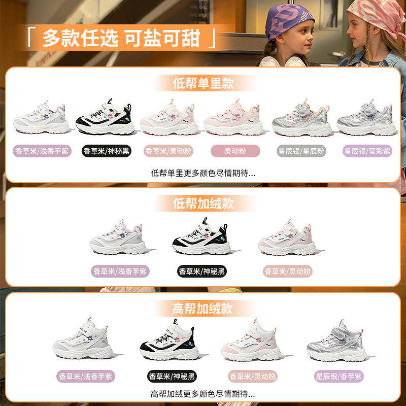 商品名称:花影丨百丽童鞋女童鞋子老爹鞋2024秋冬新款儿童运动高帮加绒棉鞋