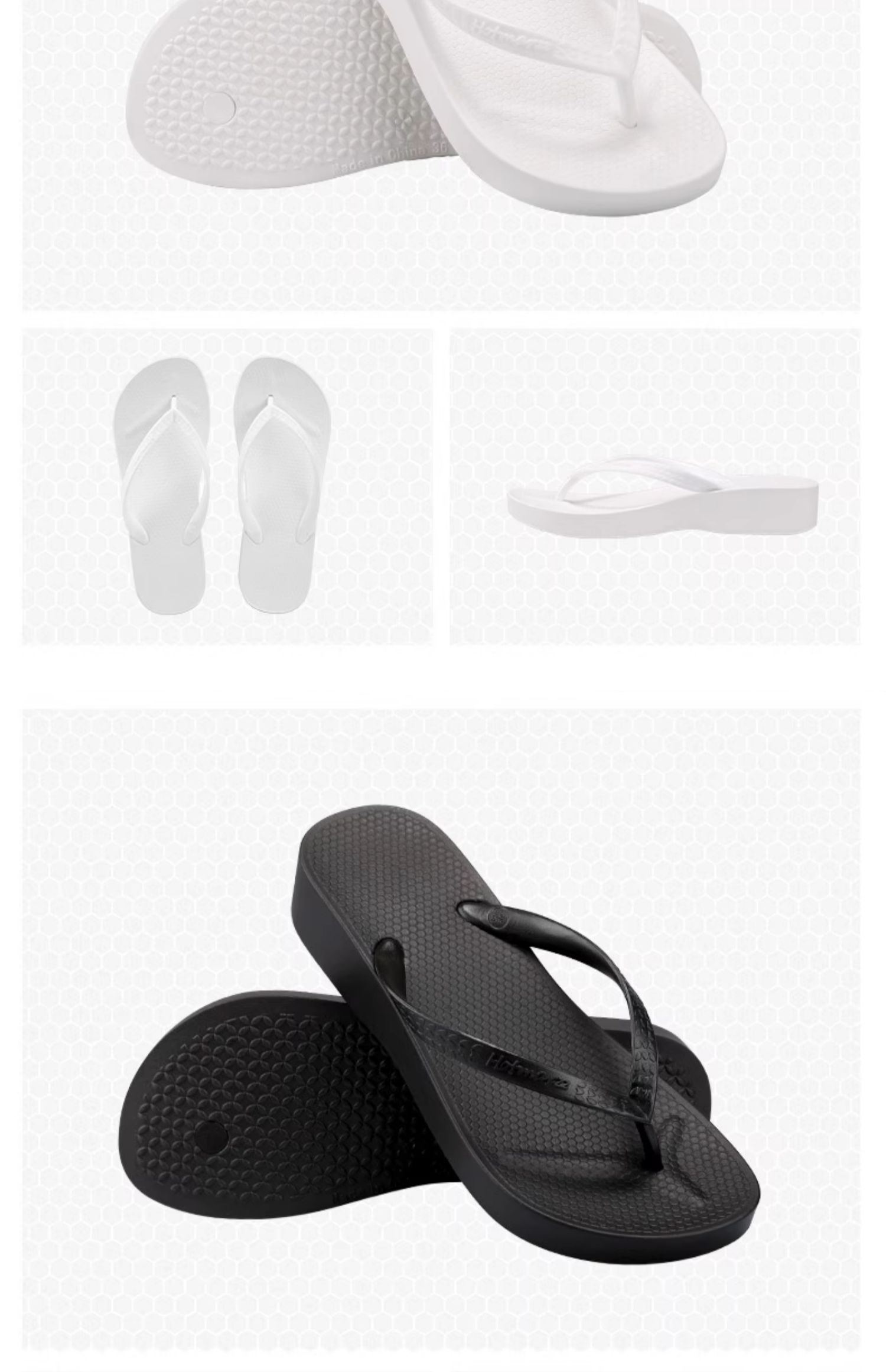 商品简介:拖鞋中的爱马仕,材质是Eva的,环保,无毒无害,这点就甩塑料拖鞋好几条街了吧!它增厚的鞋底,符合人体工学的盆地设计,贴合足部曲线,走路舒适不累脚,最重要的是漏水速干,不闷脚~