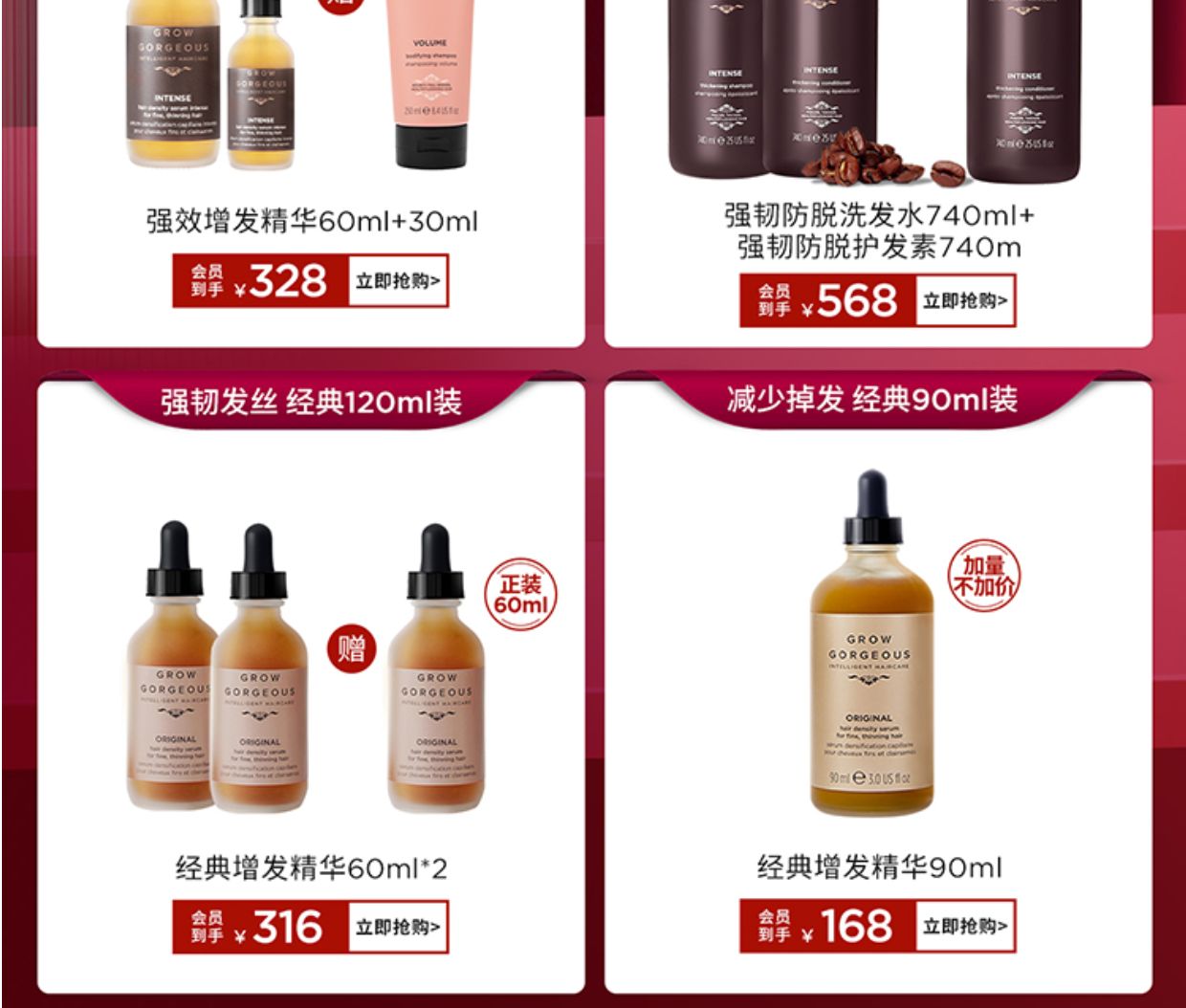 商品名称:【60ml固发装】GrowGorgeous强效增发头皮精华育发赠130ml洗护礼