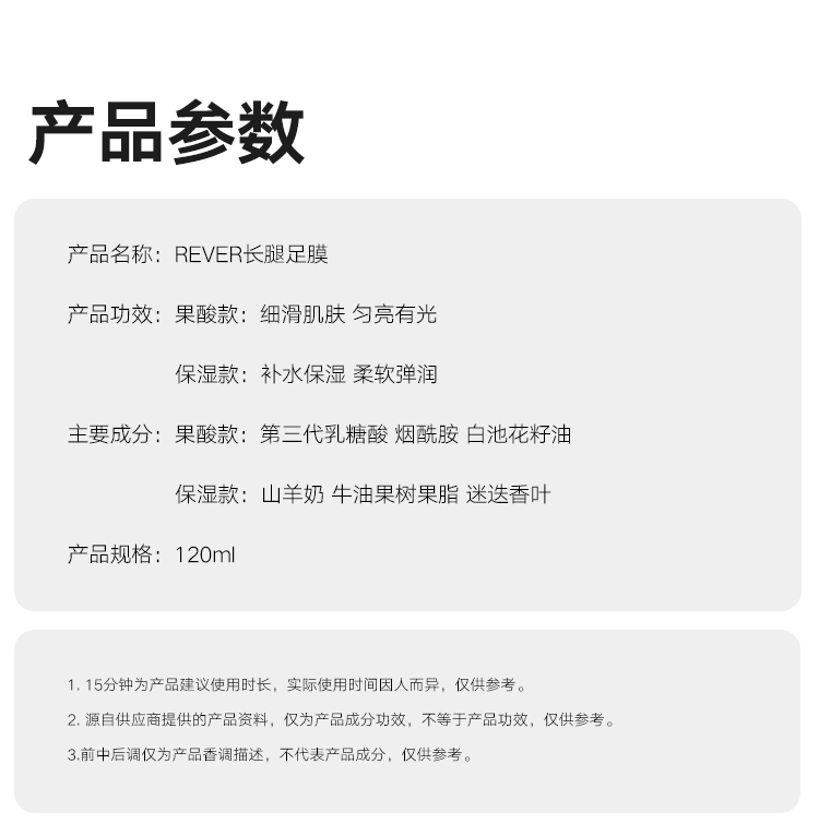 商品名称:【双11立即抢购】REVER腿膜保湿脚部护理滋润焕肤长款足膜脚膜