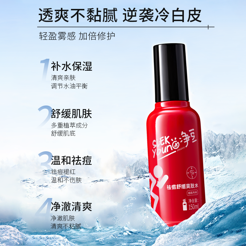 商品名称:净豆祛痘舒缓爽肤水女补水保湿喷雾控油去粉刺闭口水湿敷水化妆水