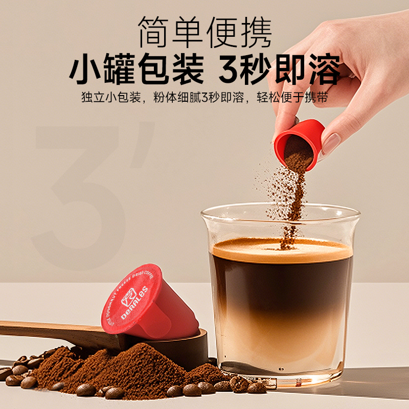 商品名称:derales冻干即溶黑咖啡2g*10颗装新品上新选用100%阿拉比卡咖啡豆