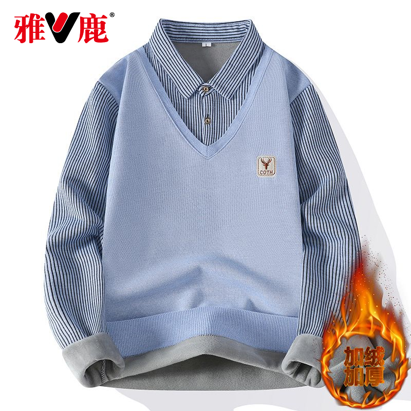商品名称:雅鹿爸爸针织衫打底衫加绒加厚假两件毛衣中年男士中老年人爷爷装