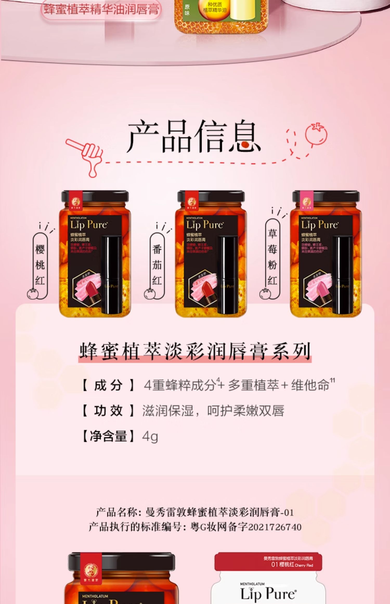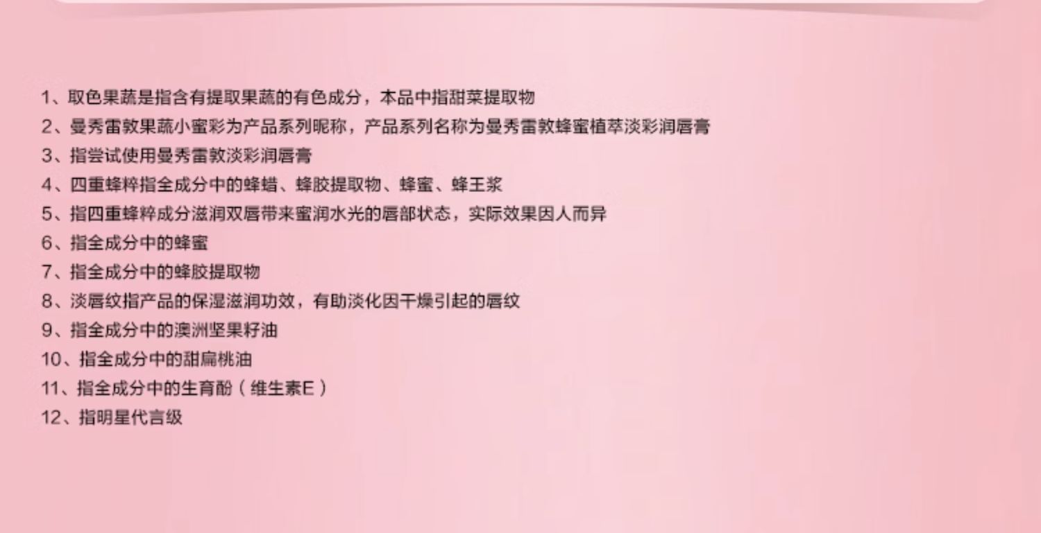 商品名称:【曼秀雷敦】植萃淡彩润唇膏有色小蜜彩保湿滋润口红女官方正品