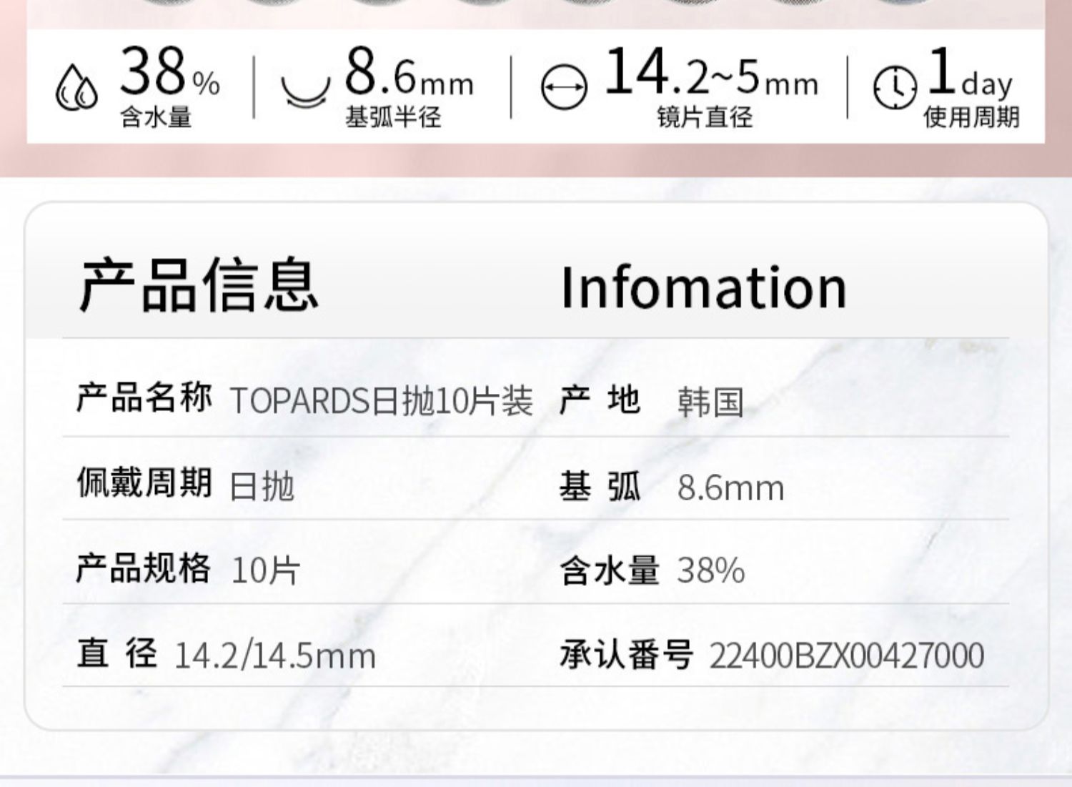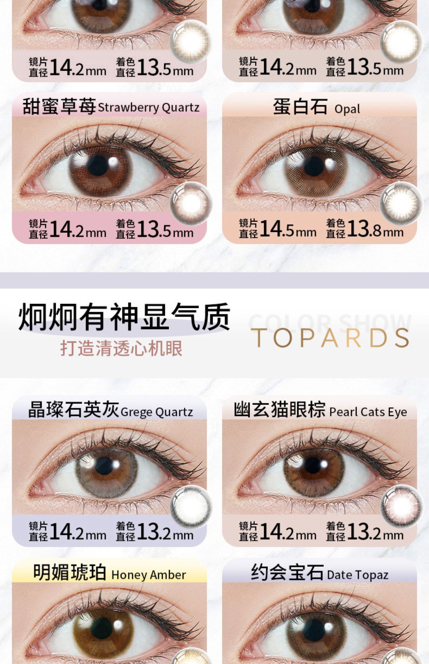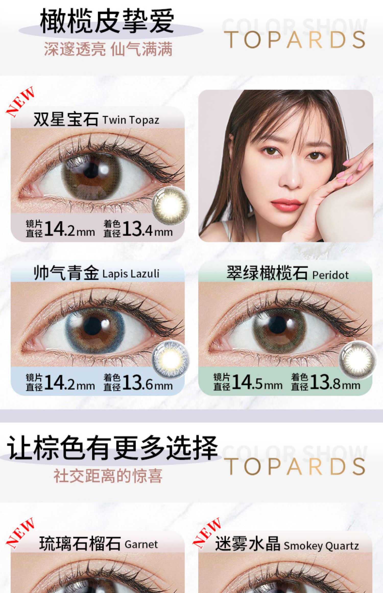 商品名称:[限时优惠]TOPARDS美瞳日抛10片彩色隐形眼镜近视镜官网正品