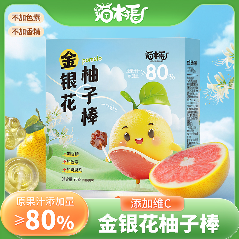 商品介绍:猫村长金银花柚子秋梨膏棒棒糖5盒