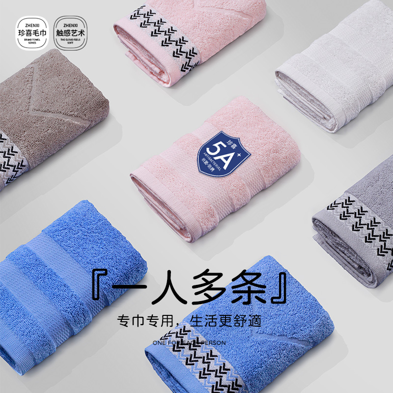 商品名称:珍喜4条抗菌家用毛巾套装纯棉新款洗脸帕吸水全棉成人男女士面巾