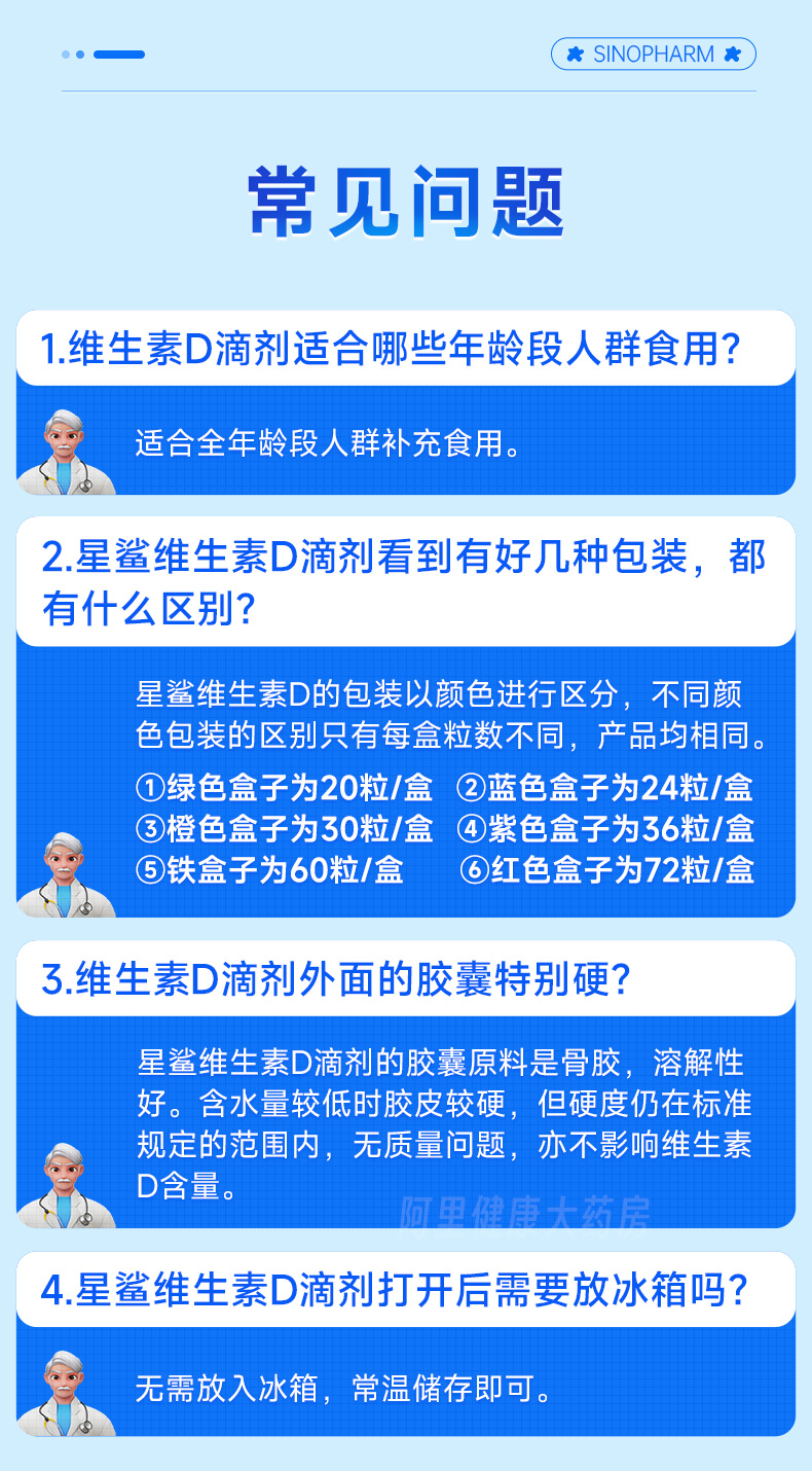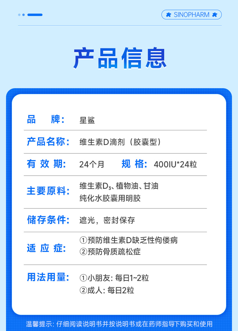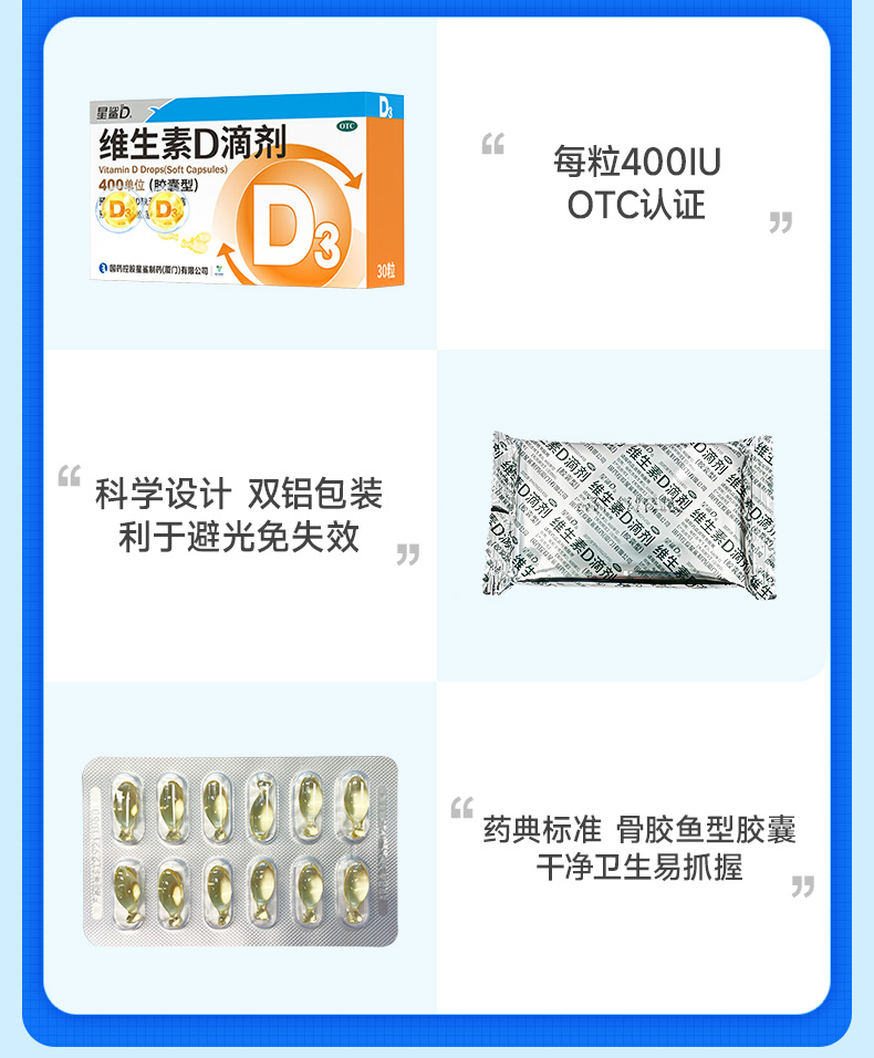 商品介绍:【6盒*30粒】星鲨维生素D3滴剂