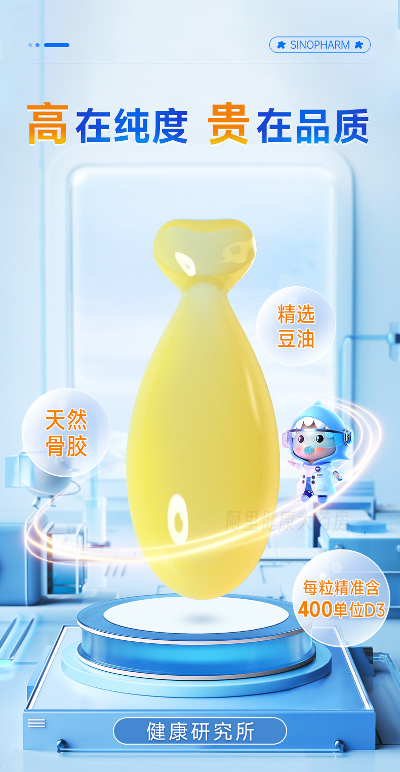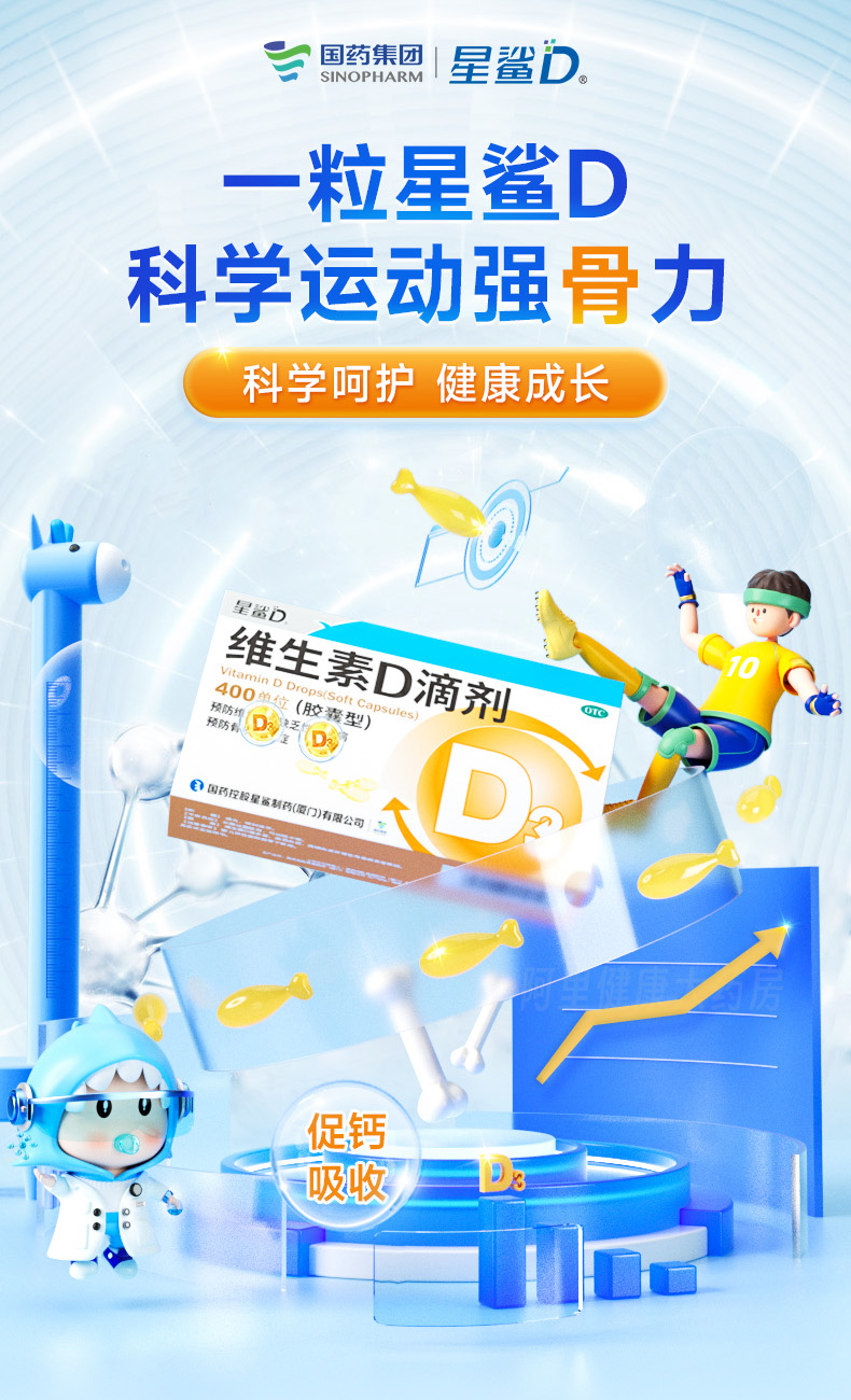 商品简介:补钙先补D,补D就选星鲨D!70年国药大牌!科学配方,促进钙吸收!有效预防佝偻病、骨质疏松!口感不腻不腥,宝宝更喜欢吃!