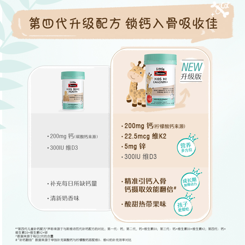 商品介绍:Swisse斯维诗儿童钙片60片+维生素60片组合