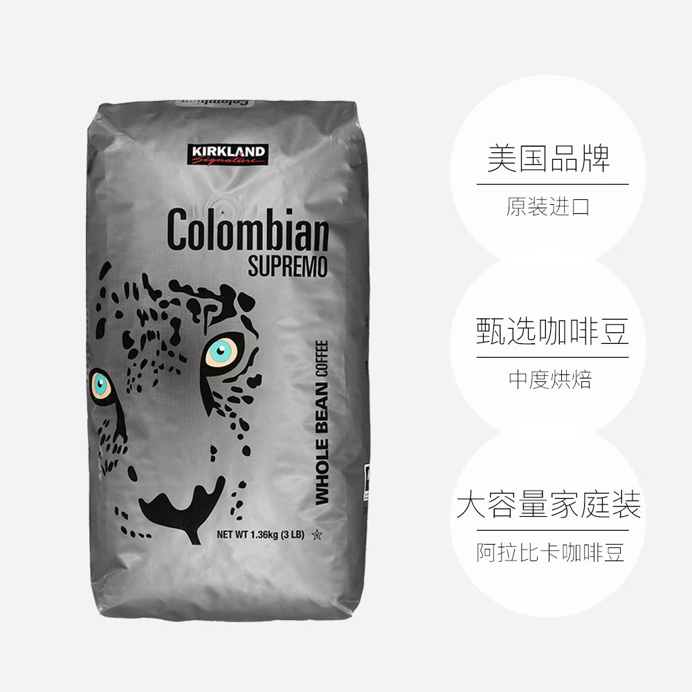 商品名称:【自营】Kirkland柯克兰哥伦比亚中度烘焙咖啡豆1.36kg/袋 大容量