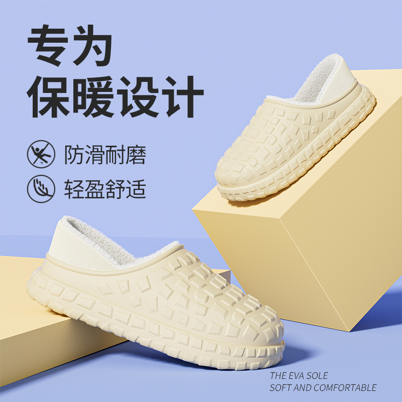 商品名称:防水棉拖鞋女款冬季2024新款外穿防滑保暖加绒厚底包跟棉拖鞋男冬