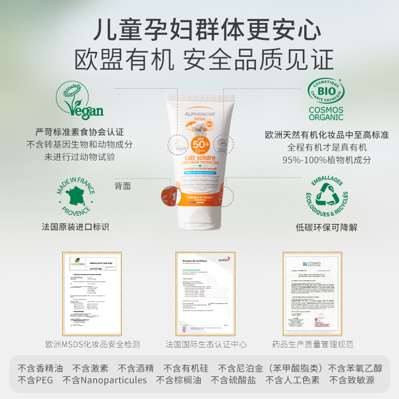 商品介绍:法国爱诺娃儿童专用有机物理防晒霜spf50+
