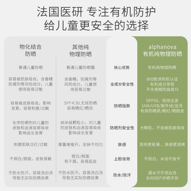商品简介:爱诺娃有机防晒选用纯物理二氧化钛,成分有机全绿,对于孕妇/婴童都是非常安全的。根据纯物理防晒的特性,建议亲亲涂抹的时候可以按照以下涂抹手法,可以有效减少假白/难涂抹情况。