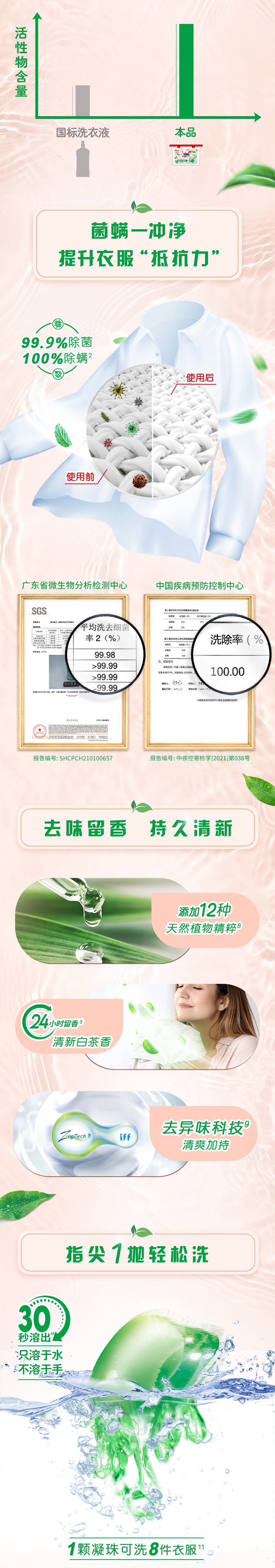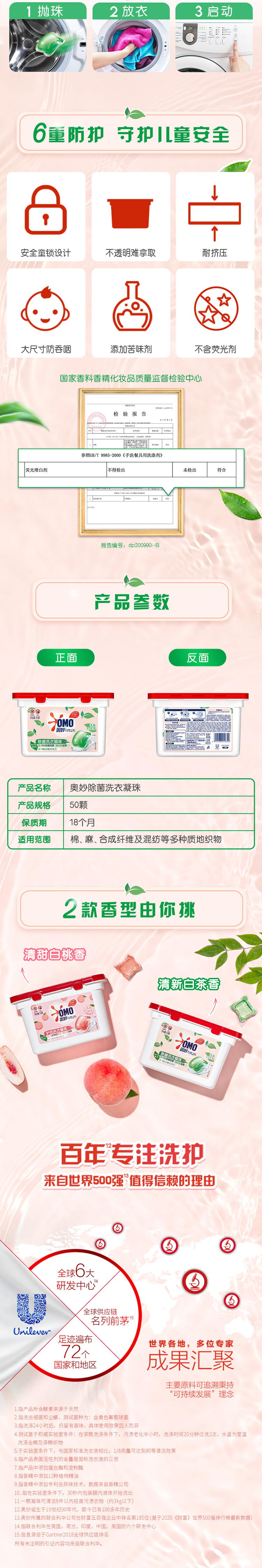 商品介绍:15.3!奥妙白茶除菌洗衣凝珠400g(50颗)