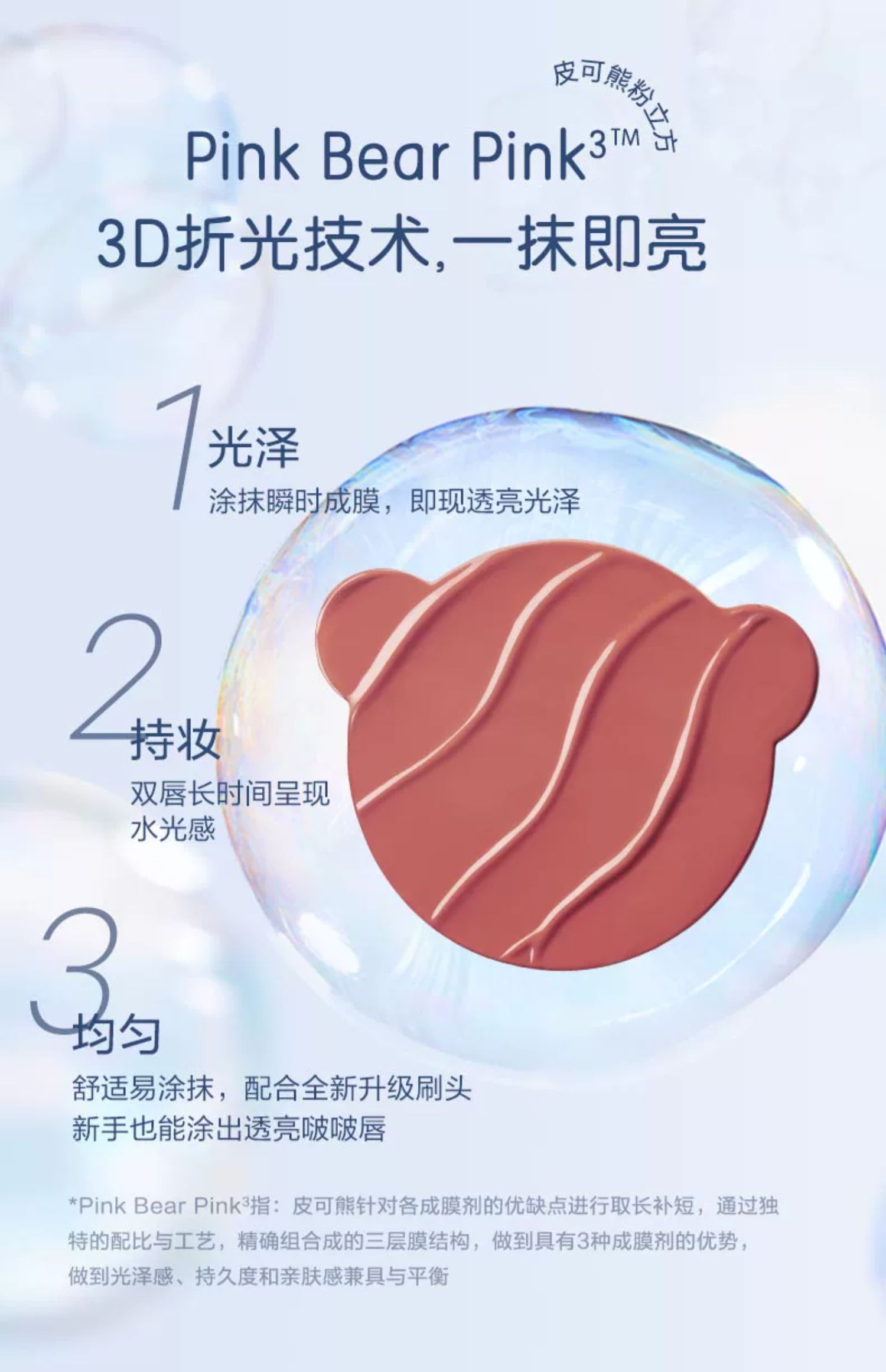 商品介绍:拍3!pinkbear皮可熊泡泡唇釉任选